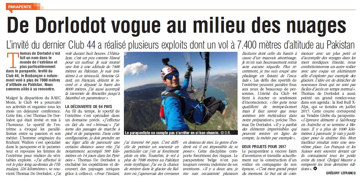 De Dorlodot vogue au milieu des nuages